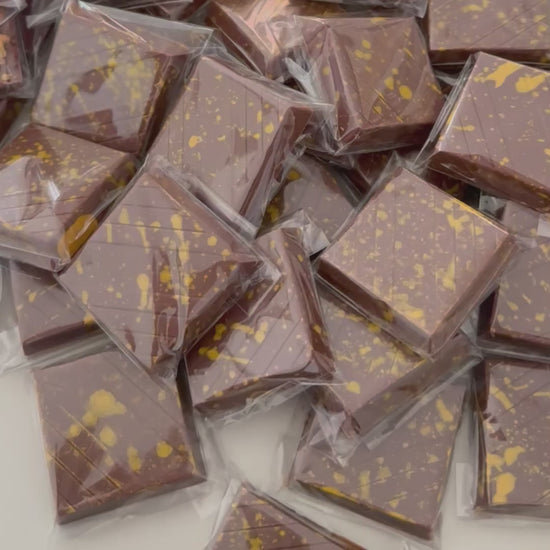Buttery, golden honeycomb pieces folded into velvety milk chocolate - sweet, crisp, and irresistible. -